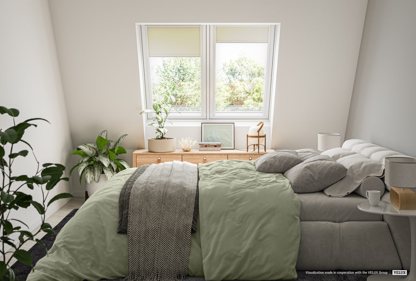 Grâce à nos fenêtres de toit VELUX, vous bénéficierez de meilleures ventilation et qualité d'air. Une ventilation efficace est très importante pour maintenir un climat intérieur sain. Avoir de l'air frais a de nombreux avantages : il nous rend plus heureux, renforce notre système immunitaire et aide notre cerveau à mieux fonctionner. Le flux d'air frais peut également aider à réguler la température. Il n'y a rien de mieux que de se coucher dans une chambre rafraÍchie à souhait.