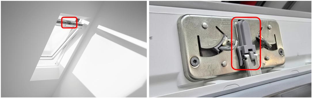 Ouvrez la fenêtre manuellement en tirant vers le bas le clapet de ventilation (poignée) située en haut de la fenêtre. L'aimant s'accroche alors simplement à la tige métallique verticale qui s'étend à l'arrière du clapet de ventilation.