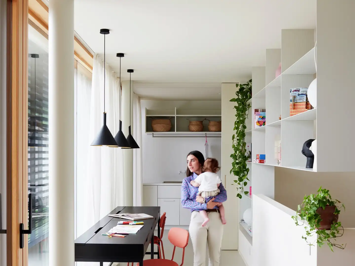 - Kunstlicht: combineer verschillende soorten verlichting en speel met de lichtbronnen om de ruimte te structureren en tegelijk functioneel te verlichten.