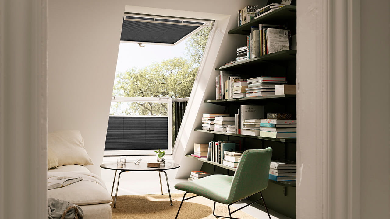 Open het bovenste gedeelte van uw dakvenster tot 45° voor een prachtig panoramisch uitzicht. Als u een nog ruimer gevoel wilt, opent u gewoon het onderste gedeelte voor een volledige balkonervaring.