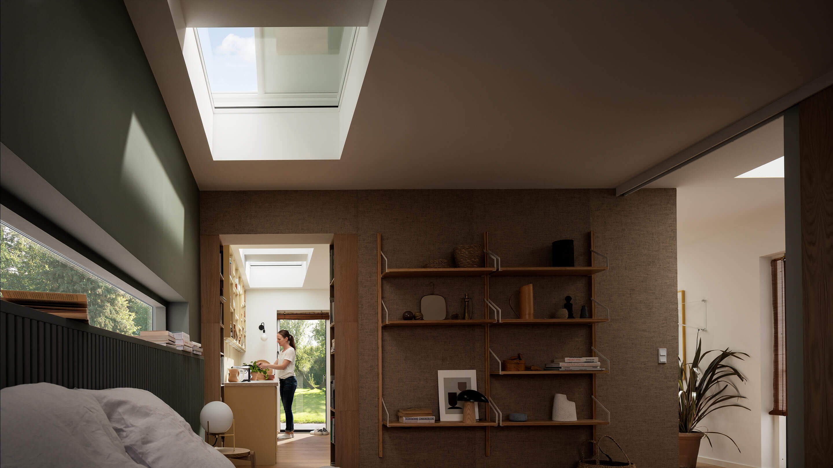 Bedien uw gordijnen overal in de kamer met een kant-en-klare muurschakelaar. U kunt uw gemotoriseerde gordijnen, elektrisch of op zonne-energie, eenvoudig bedienen met VELUX ACTIVE of VELUX App Control voor nog meer gemak.