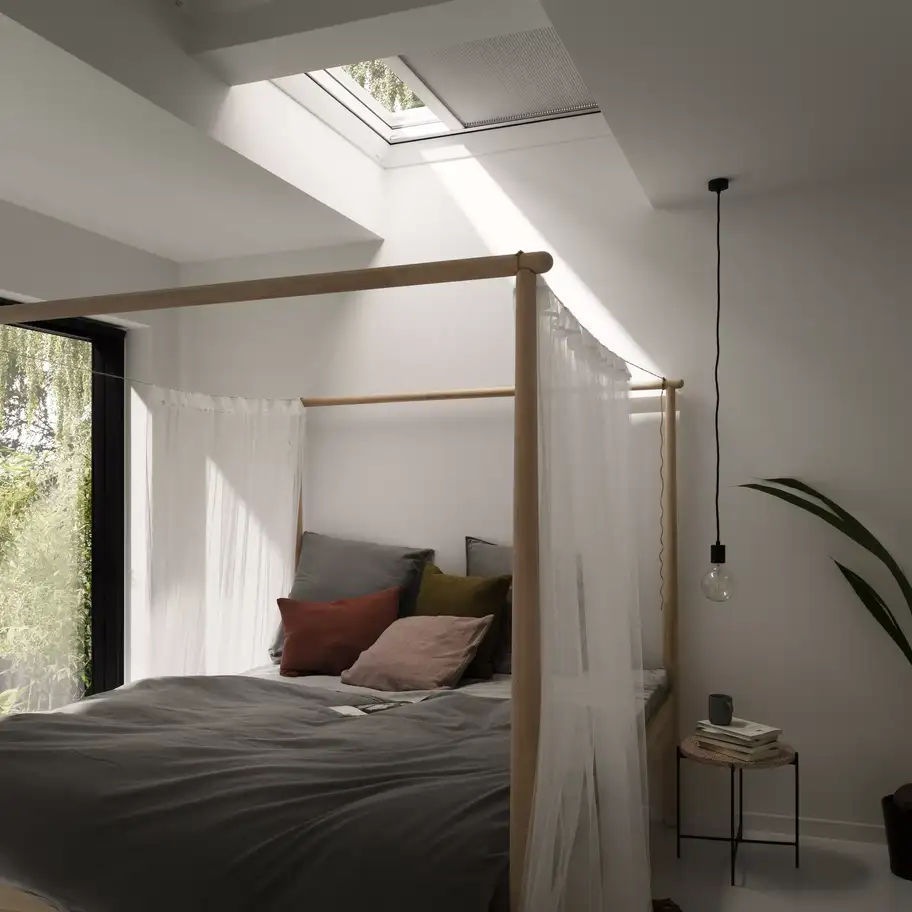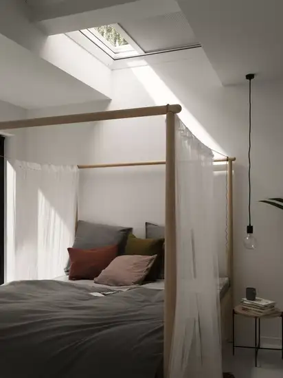Voor de installatie van VELUX gordijnen hoeft u niet te meten of bij te snijden, en u hebt geen extra gereedschap nodig. Ze zijn gemaakt om perfect in uw venster te passen en alles wat u nodig hebt, zit in de verpakking van het gordijn. Uw VELUX vensters hebben voorgemonteerde montagebeugels voor uw gordijnen. Klik gewoon op het originele VELUX gordijn en voeg de gepaste zijprofielen toe.