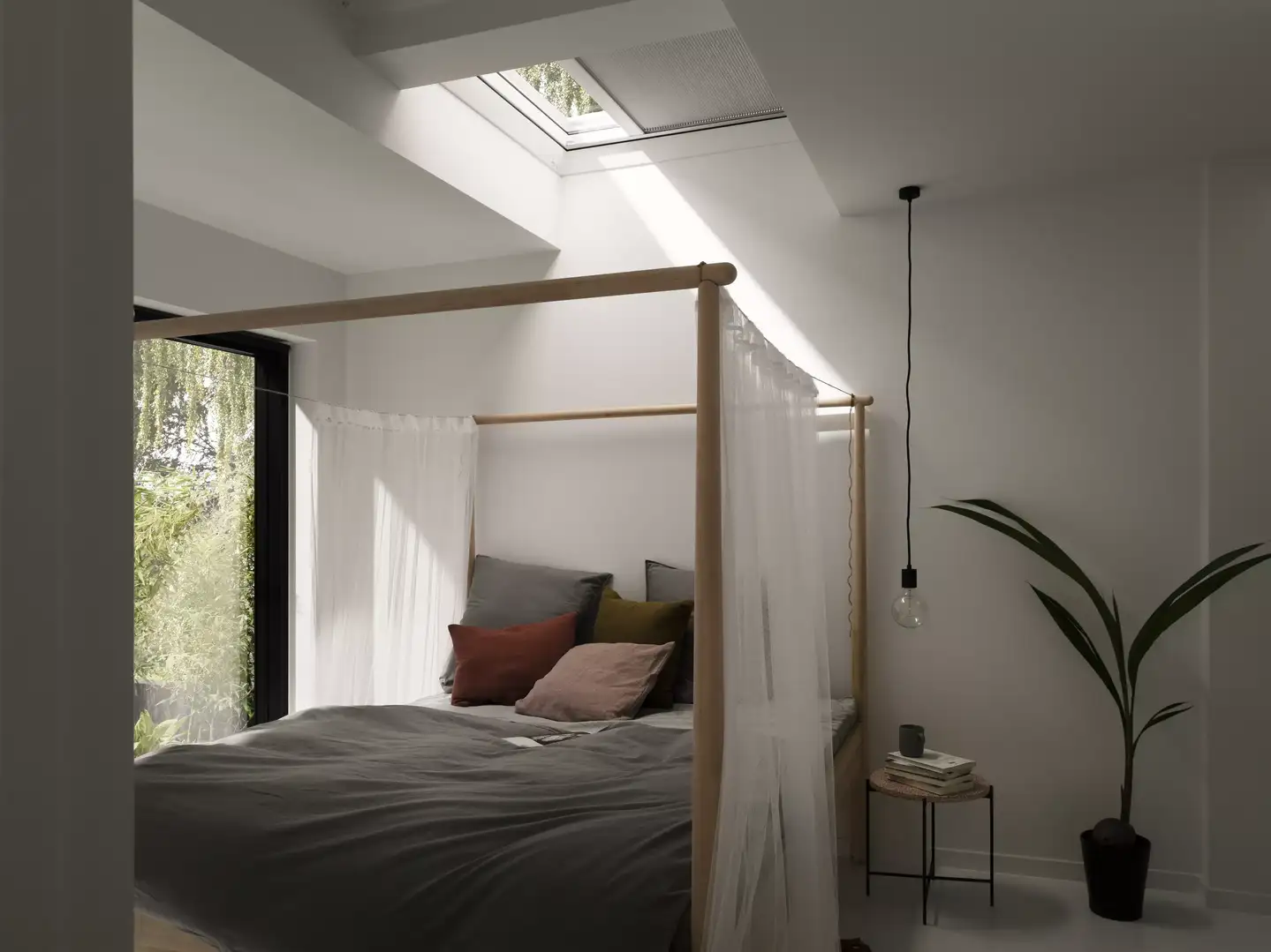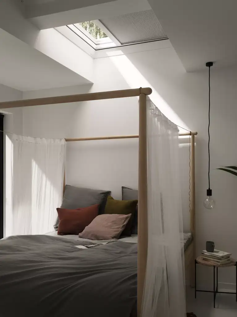 De verduisterende stof houdt het licht tegen voor een goede nachtrust of een dutje overdag. De stof is verkrijgbaar in wit of zwart.